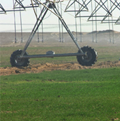 A Pivot system is a method of irrigation that pivots sprinklers across a parcel of land. These overhead sprinklers feed water to the crops in an efficient manner, minimizing water loss and evaporation.